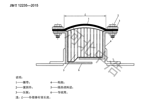 d---------壓板,壓板采用不銹鋼壓板,將圈帶與螺栓緊密連接 ,使其無泄漏 e----------------導(dǎo)流筒,采用加厚不銹鋼,降低直接磨損,增強(qiáng)疲勞次數(shù) f-------------隔熱填料層,加入陶瓷纖維、硅酸鋁和巖棉等,對(duì)非金屬補(bǔ)償器起到隔熱作用,降低熱傳遞和適當(dāng)防塵效果。