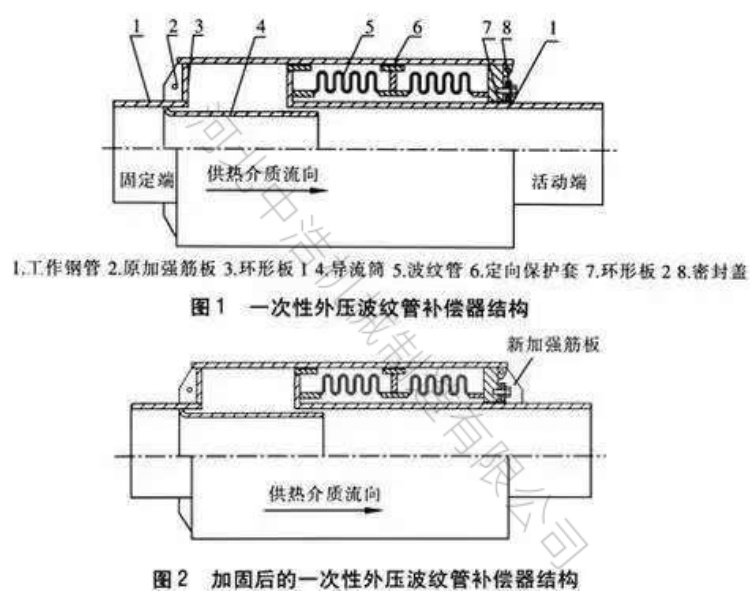 總之,直埋波紋補(bǔ)償器在市政、供暖等特殊工況條件中,可在四個(gè)關(guān)鍵部位加裝加強(qiáng)筋,且筋板均勻分布在圓周圍,形狀設(shè)有梯形或三角形,可同時(shí)在波紋管直邊端搭配碳鋼、不銹鋼等加強(qiáng)環(huán),這些加強(qiáng)筋和加強(qiáng)環(huán)可使焊縫承受溫差應(yīng)力低于許用應(yīng)力,避免端管熱影響強(qiáng)度下降,不僅可以卻使管道運(yùn)行安全還可以簡(jiǎn)化施工流程降低工程費(fèi)用。